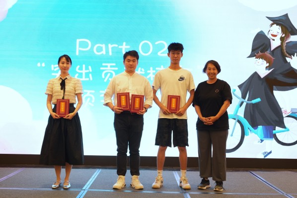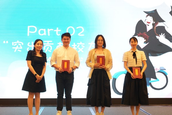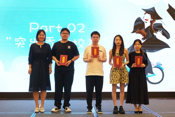 “突出贡献校友”颁奖仪式是联欢会的一大亮点。学院表彰了在校期间表现优秀、为母校争光的校友。这些优秀校友的故事,不仅彰显了上外贤达国际交流学院的教育成果,也为毕业生们树立了前行的标杆。