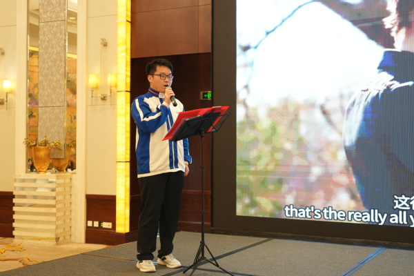 来自2020级英语(商务)专业的鲍方舟同学以生动精彩的英语配音表演,为现场观众带来了一场视听盛宴。这场表演不仅展现了鲍方舟同学个人扎实的英语能力,更是对全体毕业生在英语应用及综合素质方面所取得成就的一次生动展现与广泛认可。