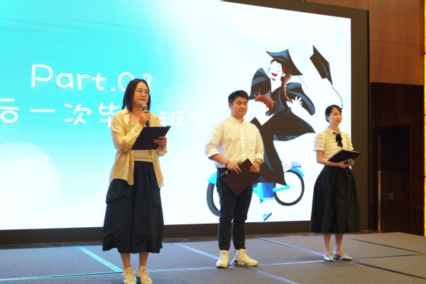 在联欢会中,龙腾腾老师、钱正阳老师、强雪婷老师为毕业生们带来了最后一次班会。三位老师以主题班会的形式,带领大家重温了大学四年的点点滴滴,分享了许多感人的故事。老师们不仅回顾了学生们在学业上的成就,更强调了团队合作、个人成长和人生价值观培养的重要性。同时,老师们也为毕业生们送上了最真挚的祝福,鼓励他们勇往直前,追逐自己的梦想。