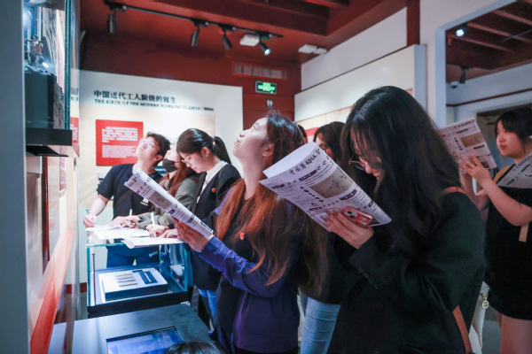配图:在中国劳动组合书记部旧址陈列馆,参访队伍对照《中国劳动组合书记部旧址陈列馆研学单》,在这拥有百年历史的石库门建筑中,探寻中国革命先辈们的足迹,通过沉浸式学习触摸历史印记。