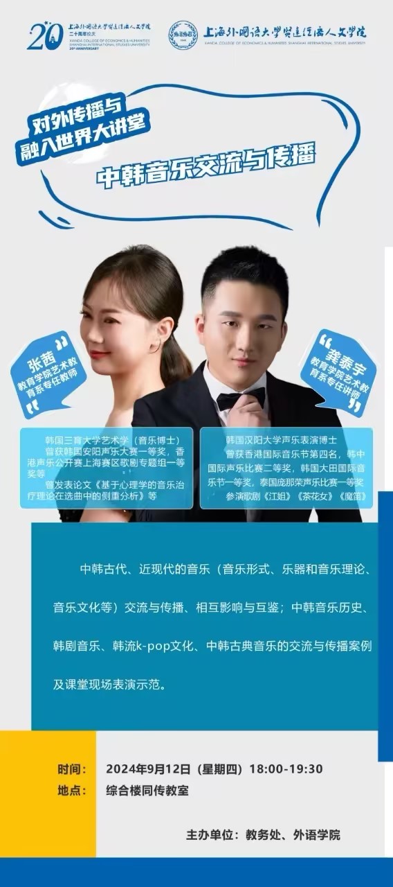 9月12日 张茜、龚泰宇:中韩音乐交流与传播(对外传播与融入世界大讲堂)
