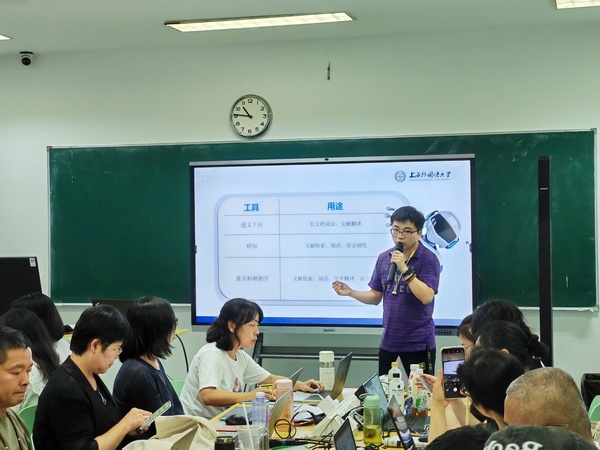 随后,上海市“晨光学者”、taptap点点足彩国际教育学院讲师吴成刚博士,带来了“慧用AI,科研效率Max提升”的专题分享。他详细讲解了星火科研助手、研知、通义千问等AI工具在文献阅读与评述、数据采集与分析、语言表达与润色等方面的应用。通过实操演练环节,教师们亲身体验了AI工具在科研过程中的强大辅助作用,进一步激发了他们利用AI技术提升科研效率的热情。