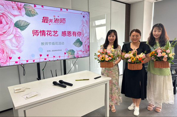 一花一世界,一叶一乾坤。插花之艺,不但升华了对美的细腻感知,更宛如一缕清风,拂过心田,让人忘却尘嚣,压力随之消散。值此教师节之际,校工会精心策划的插花活动,带领着教师们漫步于艺术花海,细细品味每一朵绽放背后的雅致与韵味,共享这份由自然引发的宁静与喜悦。本次活动不仅让教师们沉浸于美的创造之中,更成为了一座桥梁,促进了彼此间的交流。遍地蕙兰思化雨,满园桃李谢春风,希望这一束美好,一缕芬芳,可以为这个教师节增添一抹别致的馨香,久久不散,历久弥新。