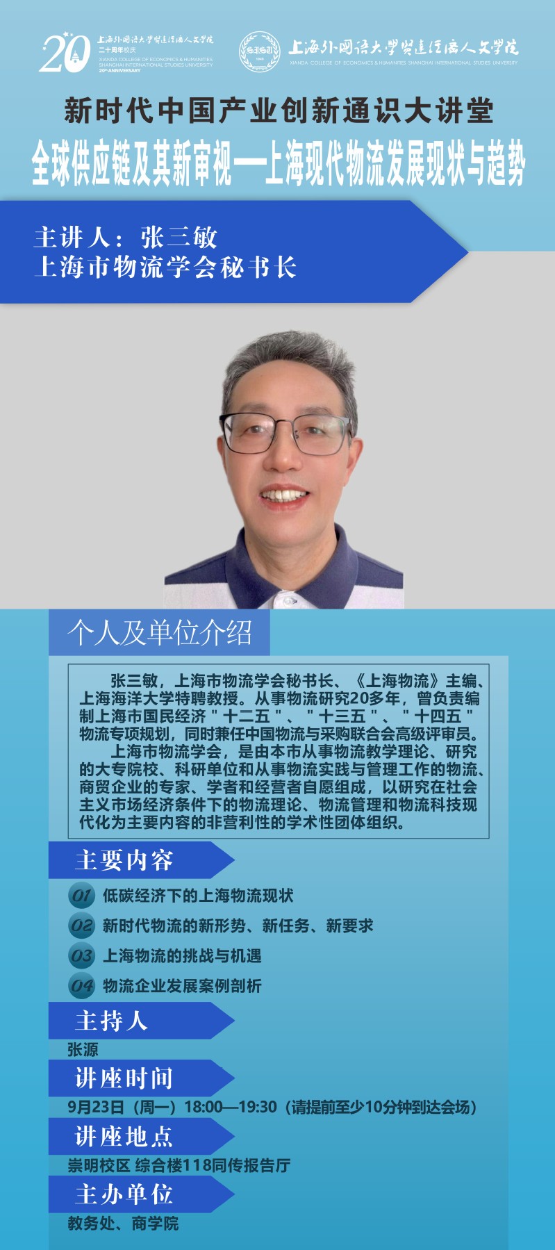 9月23日 张三敏:全球供应链及其新审视——上海现代物流发展现状与趋势(新时代中国产业创新通识大讲堂)