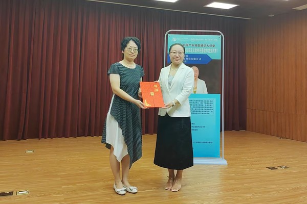 教务处陶洁副处长为李晓英董事长颁发客座教授聘任证书,感谢她对taptap通识大讲堂建设的大力支持。