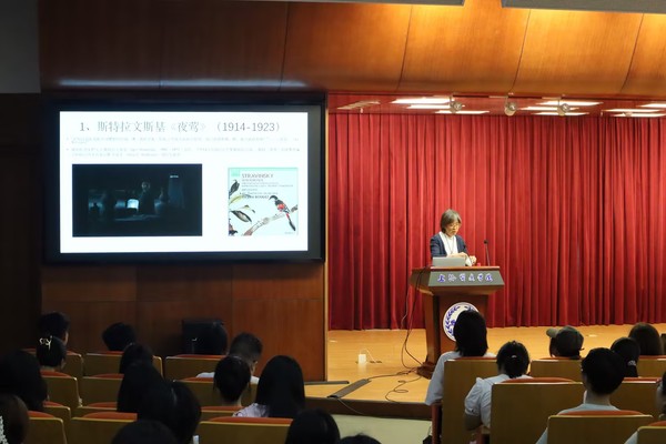 梁教授以其深厚的学术功底和敏锐的洞察力,从多角度挖掘了西方音乐中的中国元素,来引导同学们思考西方音乐对中国话题的诠释方式,并通过分析斯特拉文斯基《夜莺》、齐尔品《虹彩妹妹》等一系列耳熟能详等经典著作给同学们带来更多的艺术享受和思考感悟。