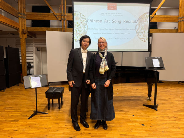 自6月抵达新西兰以来,沈光耀老师不仅在学术研究方面孜孜不倦地探索,同时也在艺术舞台上展现风采。7月12日,他受邀参加了惠灵顿音乐学院举办的中国艺术歌曲专场音乐会,演唱了《怀念曲》和《大江东去》。他细腻的演唱技巧与深情演绎,赢得了在场声乐导师与观众的一致好评。