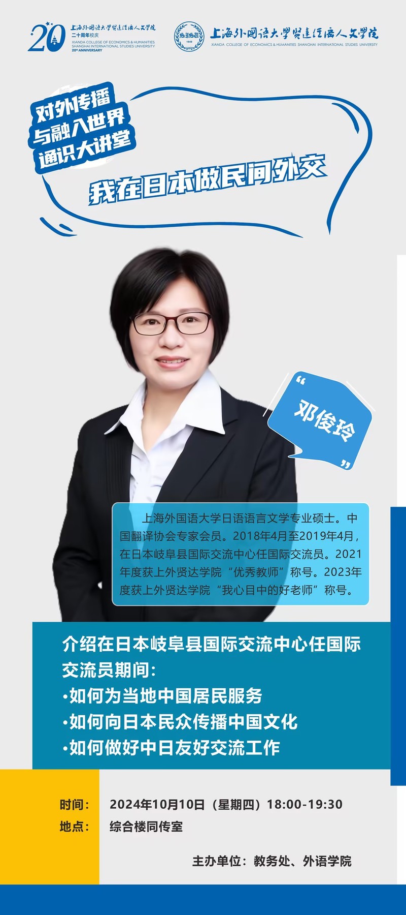 10月10日 邓俊玲:我在日市做民间外交(对外传播与融入世界通识大讲堂)
