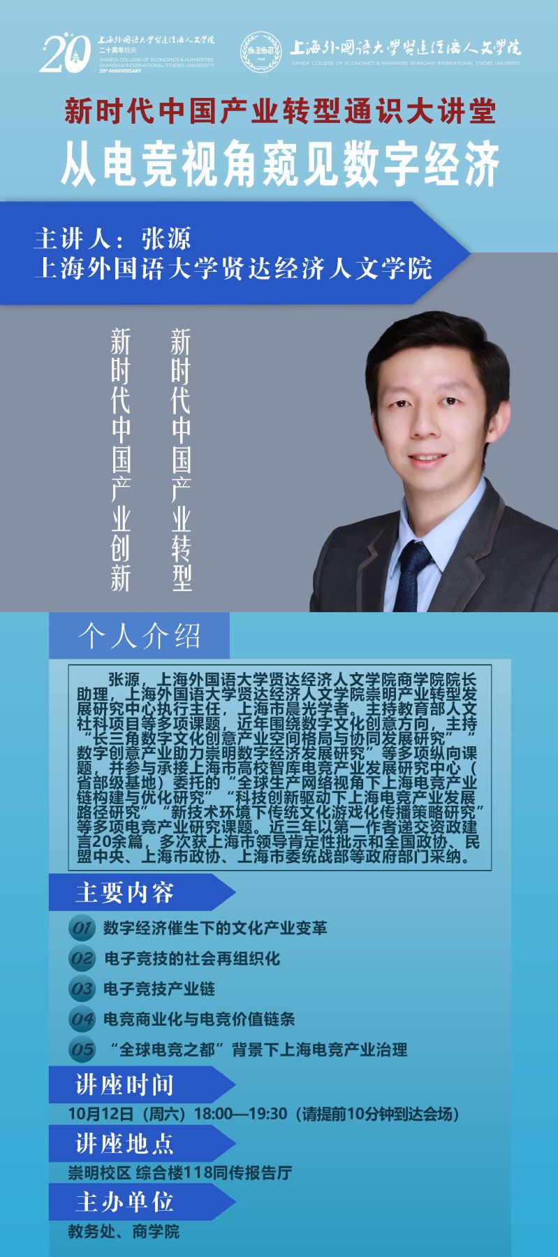 10月12日 张源:从电竞视角窥见数字经济(新时代中国产业转型通识大讲堂)