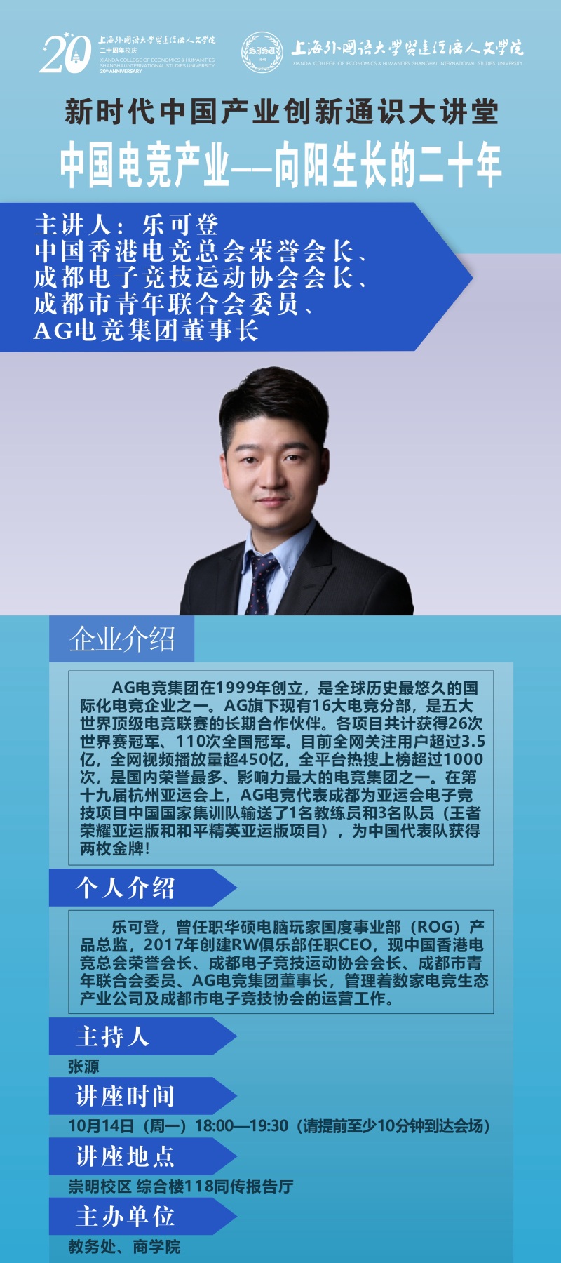 10月14日 乐可登:中国电竞产业--向阳生长的二十年(新时代中国产业创新通识大讲堂)