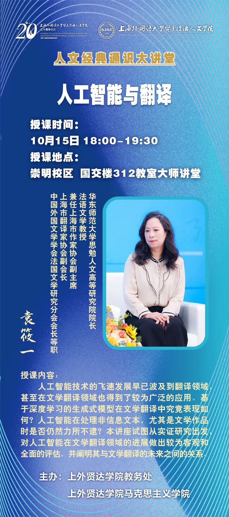 10月15日 袁筱一:人工智能与翻译(人文经典通识大讲堂)