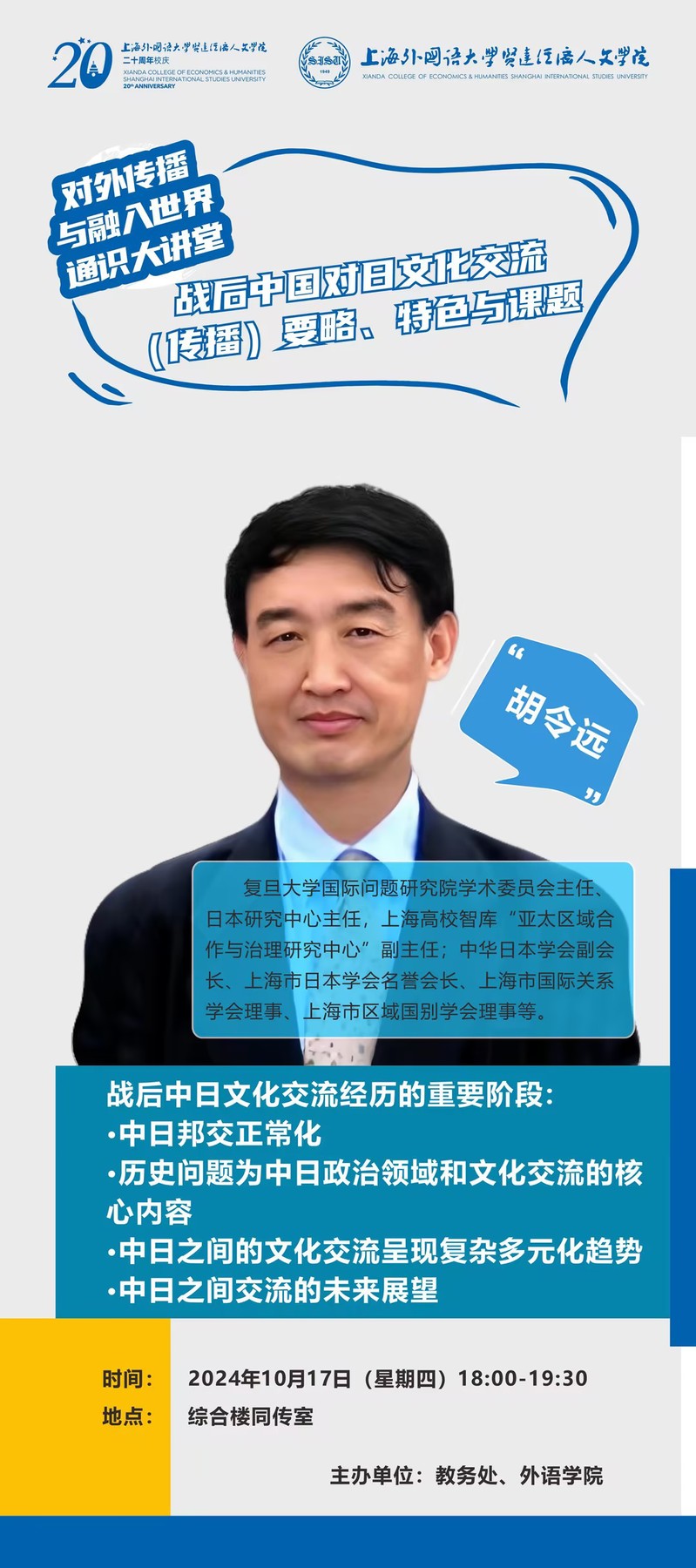 10月17日 胡令远:战后中国对日文化交流(传播)要略、特色与课题(对外传播与融入世界通识大讲堂)