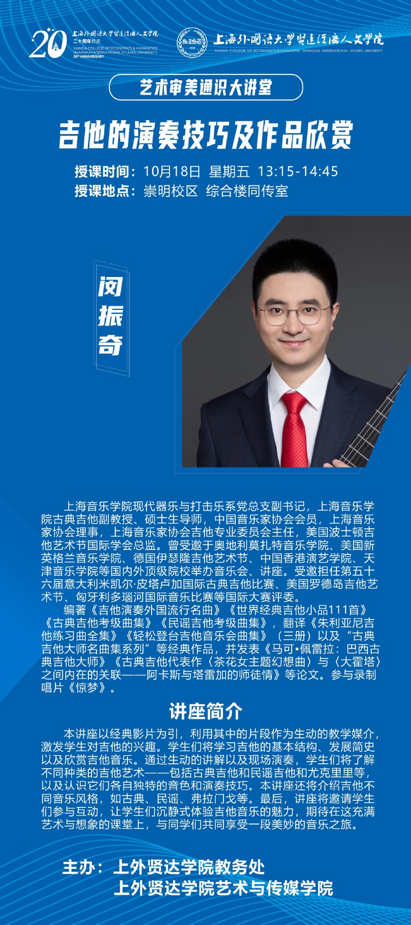 10月18日 闵振奇:吉他的演奏技巧及作品欣赏(艺术审美通识大讲堂)