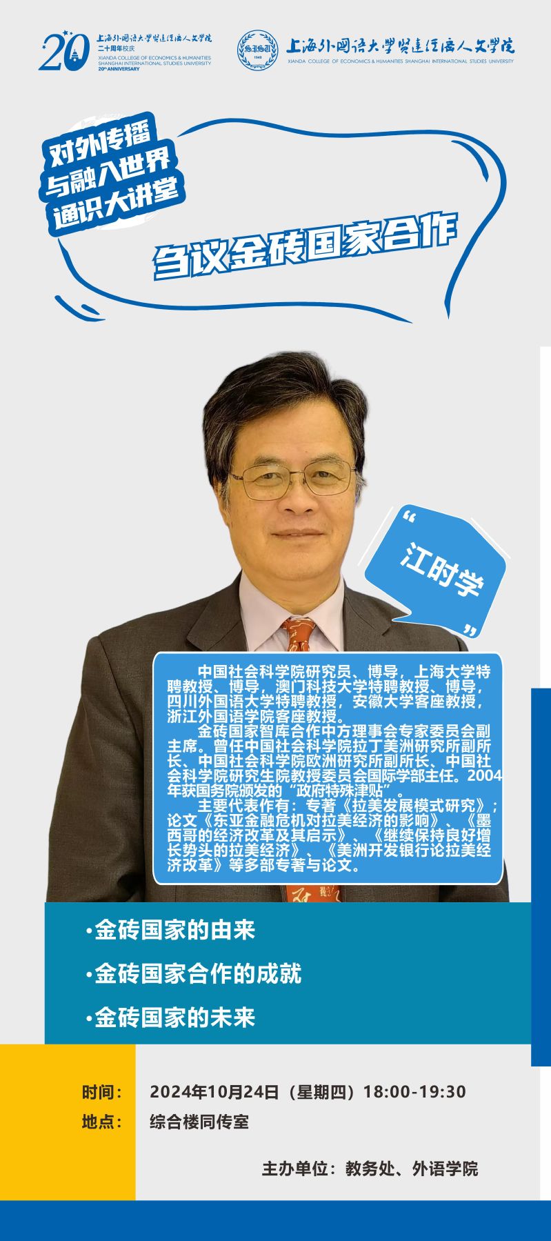 10月24日 江时学:刍议金砖国家合作(对外传播与融入世界通识大讲堂)