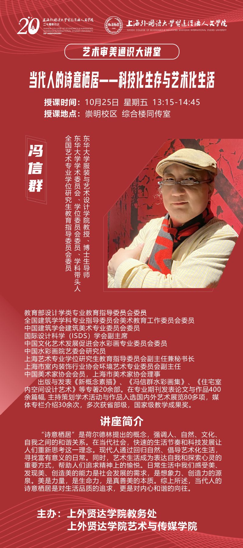 10月25日 冯信群:当代人的诗意栖居——科技化生存与艺术化生活(艺术审美通识大讲堂)