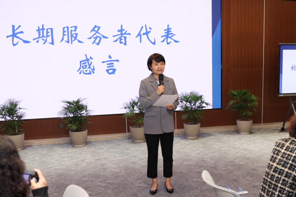 马华老师的发言,更是代表了所有长期服务者的心声。她表达了对学校的感激之情并感谢贤达提供了一个实现自我价值的平台。她回顾了在贤达学院的十六年工作经历,见证了学校的发展和重要里程碑,相信通过共同努力,学校能够培养出更多具有国际视野和社会责任感的优秀人才。