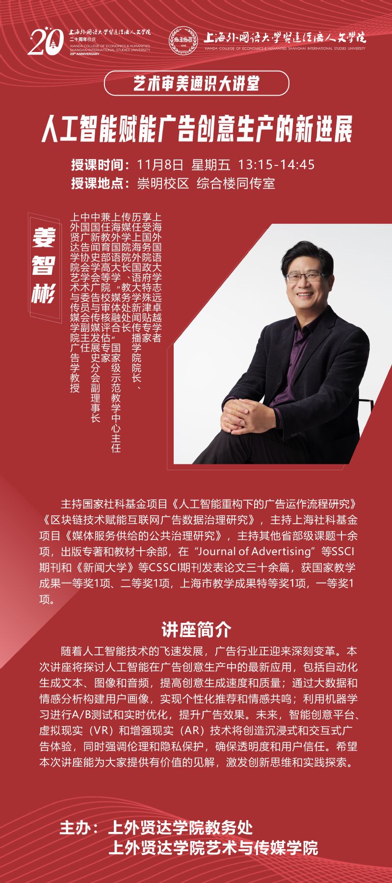 11月8日 姜智彬:人工智能赋能广告创意生产的新进展(艺术审美通识大讲堂)