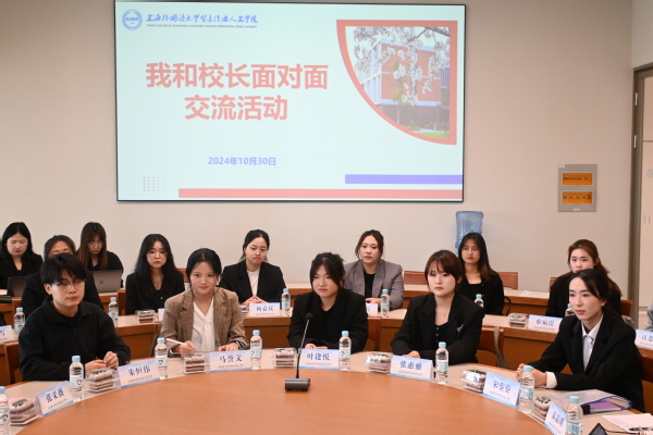 值此学校二十周年校庆之际,为搭建学校与学生常态化沟通桥梁,体现学校“以学生为中心”的工作理念,10月30日下午,首期“我与校长面对面”交流活动在崇明校区图文信息中心308研讨室举办。校长郑方贤、学生服务管理中心主任涂丽萍、综合运行保障中心主任解玉成、教务处副处长王靖宇、学生服务管理中心副主任彭煜铭、商学院党总支副书记袁晶明、外语学院党总支副书记张采薇出席活动。本次活动由学工处处长张园园主持。