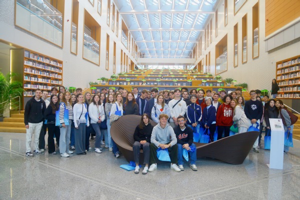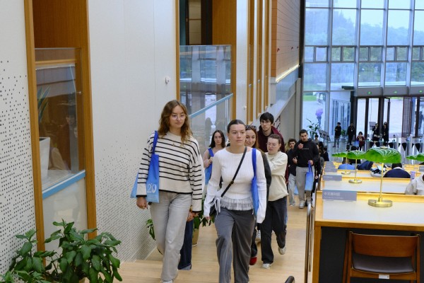开幕式结束后,法国昂热高商一行在taptap师生的带领下,参观了崇明校区图文信息中心。来自国际交流学院、外语学院不同专业的同学们全程使用英语、法语进行陪同解说,帮助来宾深入了解了taptap生态、人文、智慧、科技的国际化校园建设理念。