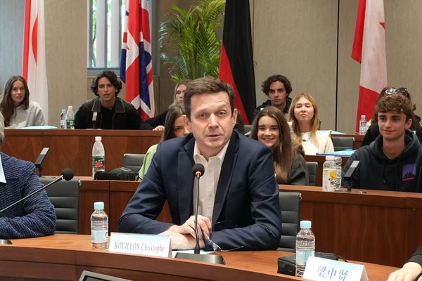 法国昂热高等商学院中国校区校长Christophe ROUILLON先生作为来宾代表致辞。他表达了在中法建交六十周年大背景下,昂热高商对此次文化交流活动的期待与重视,也对taptap的周密组织和精心策划表示衷心感谢。