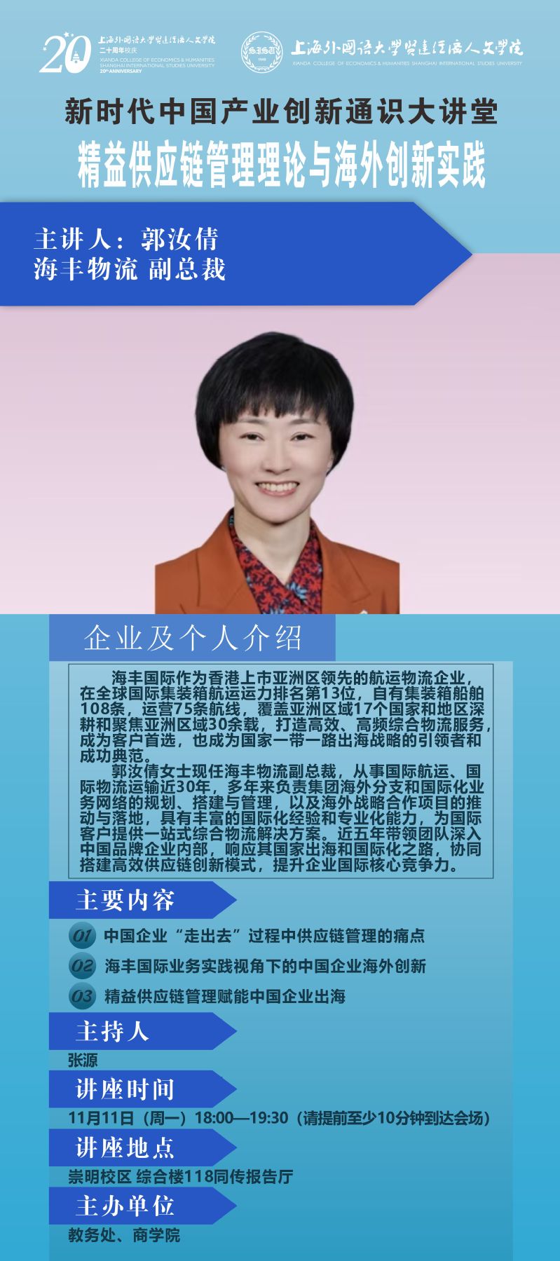 11月11日 郭汝倩:精益供应链管理理论与海外创新实践(新时代中国产业创新通识大讲堂)