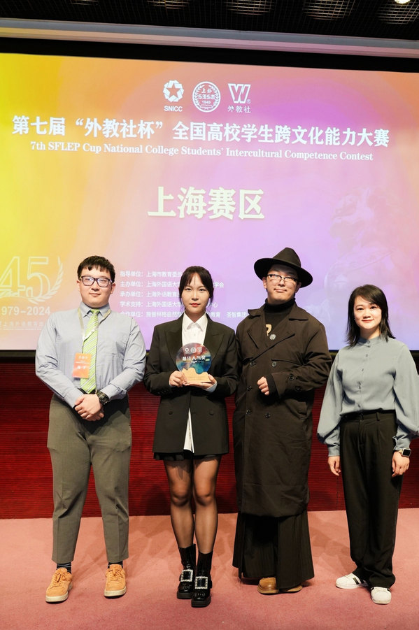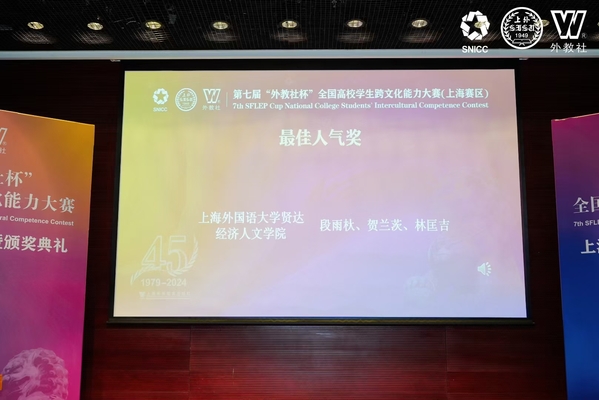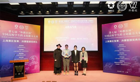 11月9日至10日,第七届“外教社杯”全国高校学生跨文化能力大赛上海赛区比赛在上海外语教育出版社圆满落幕。taptap参赛团队由外语学院英语专业的段雨杕同学、国际交流学院西班牙语(商务)专业的贺兰茨同学、艺术与传媒学院新闻学(新媒体)专业的林匡吉同学组成,三人凭借出色的表现,荣获上海市三等奖及最佳人气奖,展现了其在跨文化交流领域的卓越风采。
