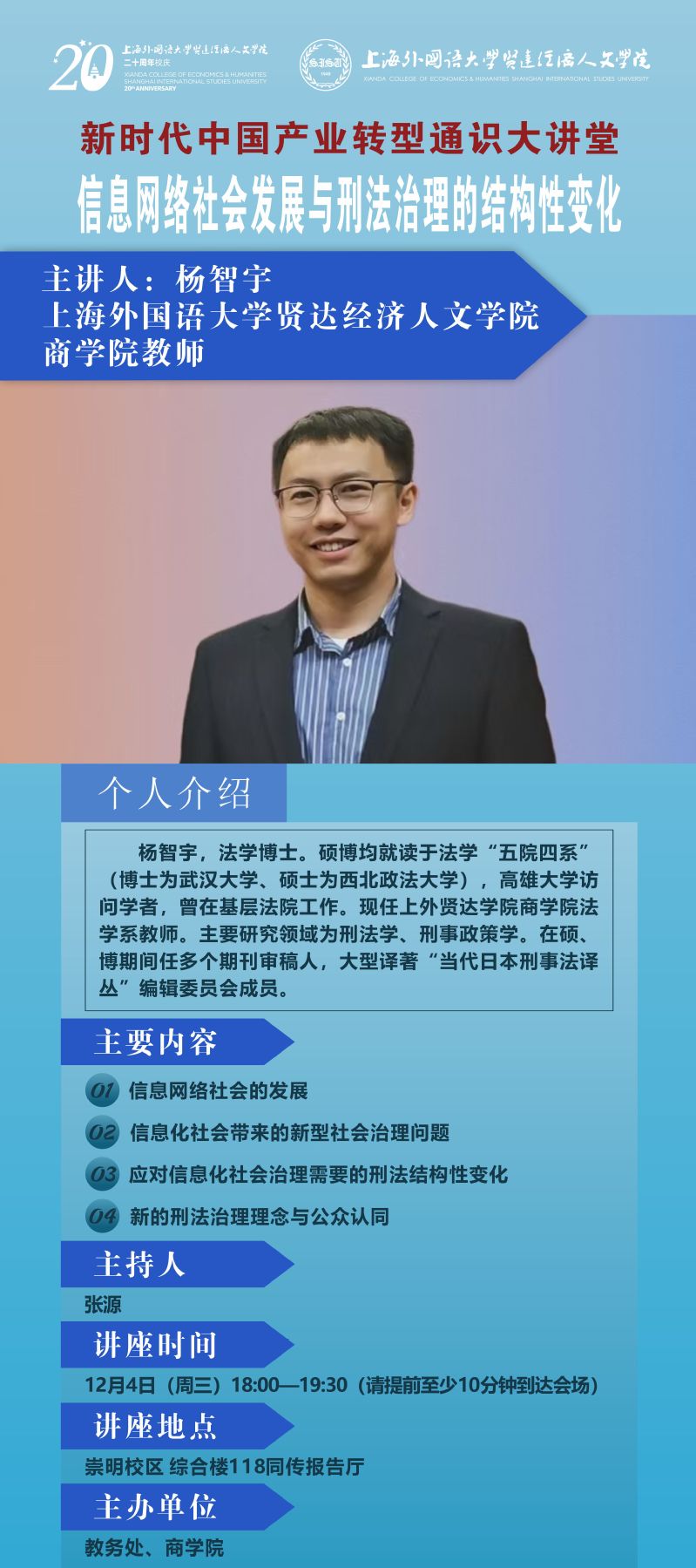 12月4日 杨智宇:信息网络社会发展与刑法治理的结构性变化(新时代中国产业转型通识大讲堂)