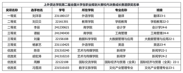 参赛选手围绕自身通用素质、岗位能力、发展潜力、行动成果和目标契合度等方面进行了充分展示,体现了贤达学子青春朝气的风采以及勇于担当的家国情怀,得到了现场评委、老师和同学们的一致好评。最终来自外语学院的刘洋菲和数字文旅学院的袁艺匀两位同学分别获得成长赛道和就业赛道的校内决赛一等奖。