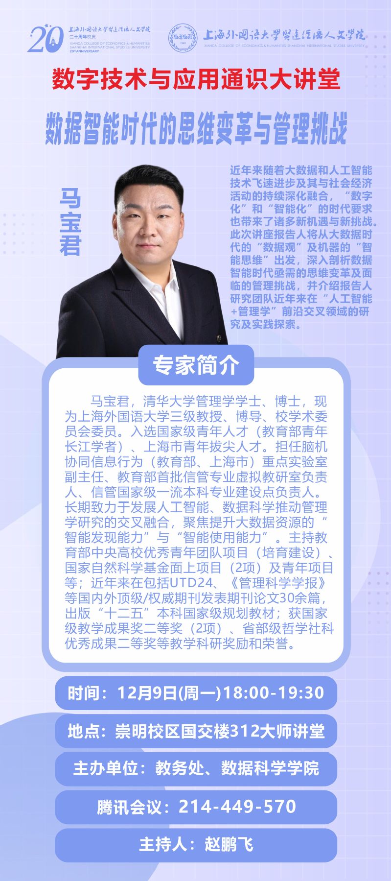 12月9日 马宝君:数据智能时代的思维变革与管理挑战(数字技术与应用通识大讲堂)