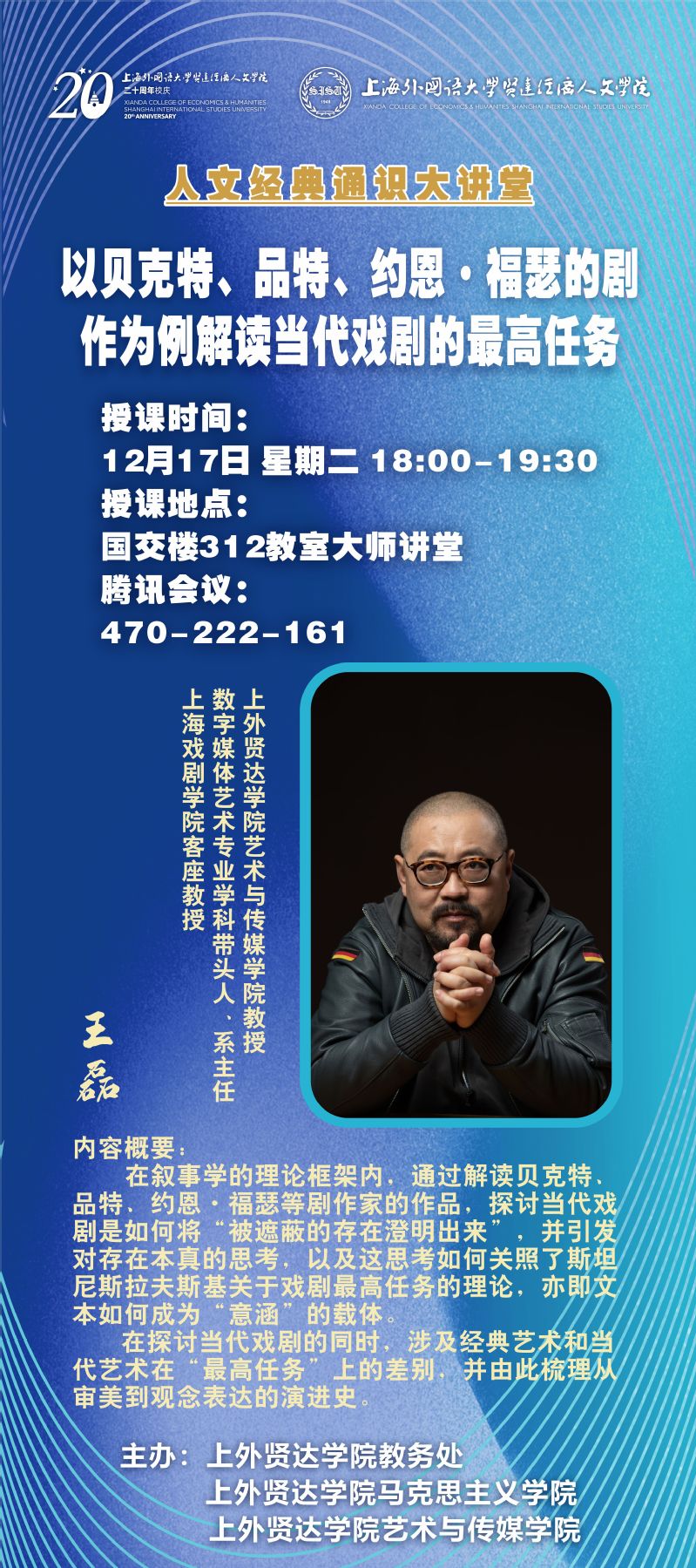 12月17日 王磊:以贝克特、品特、约恩·福瑟的剧作为例解读当代戏剧的最高任务(人文经典通识大讲堂)