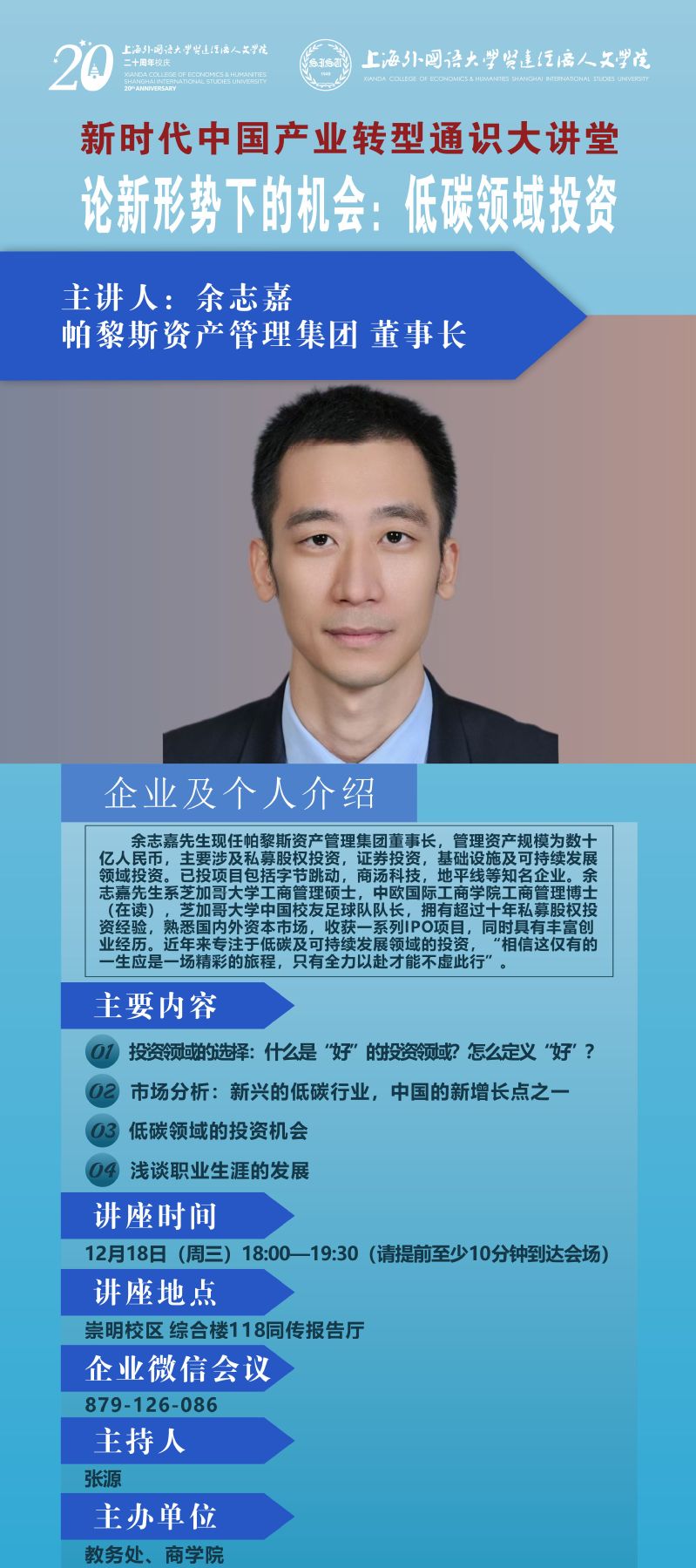 12月18日 余志嘉:论新形势下的机会:低碳领域投资(新时代中国产业转型通识大讲堂)