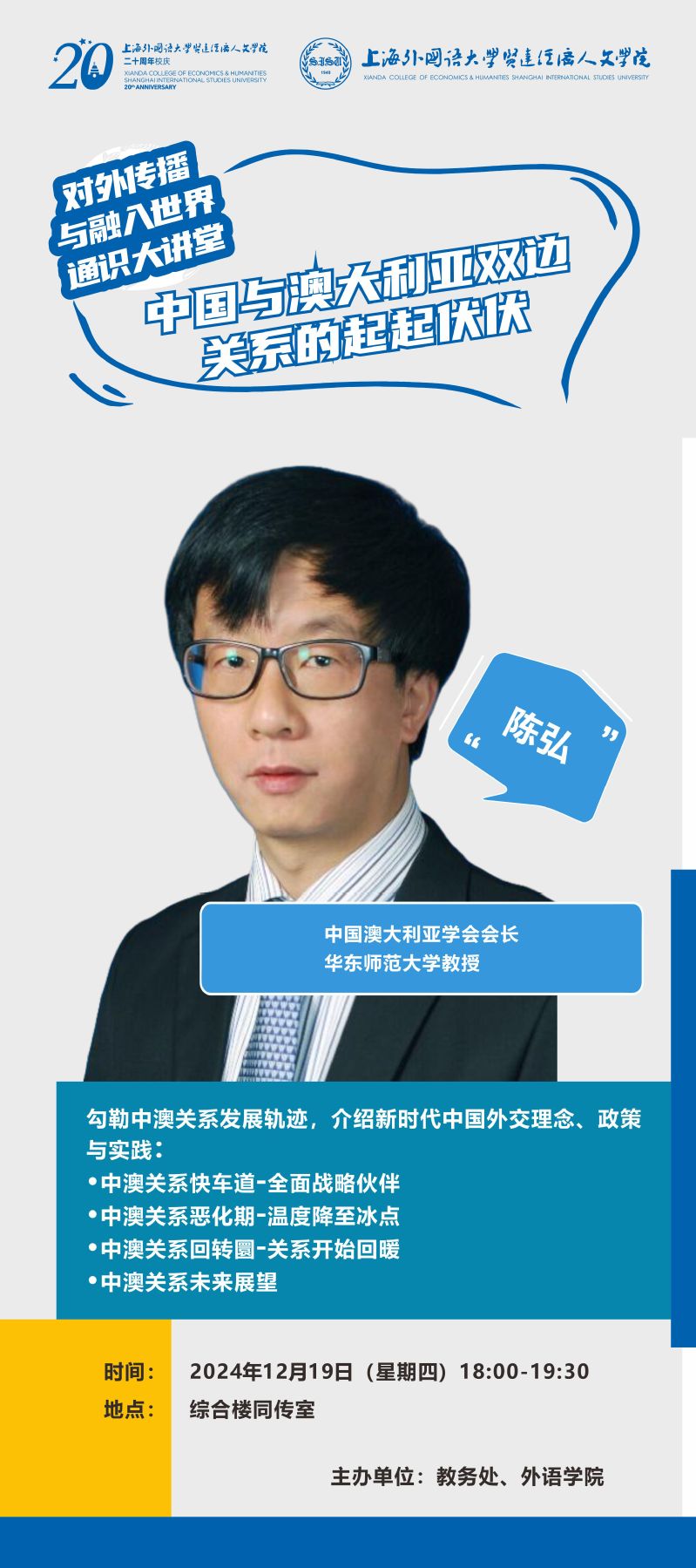 12月19日 陈弘:中国与澳大利亚双边关系的起起伏伏(对外传播与融入世界通识大讲堂)
