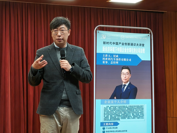 12月16日,科世科汽车部件有限公司(科博达技术股份有限公司旗下子公司)董事、总经理纪成先生应邀来到崇明校区,为选修“新时代中国产业创新”通识大讲堂的贤达学子带来题为“新经济环境下中国企业全球化的公司治理”专题讲座。