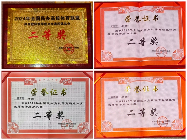 12月13-15日,2024年全国民办高校体育教师教学能力大赛在成都理工大学工程技术学院举办,来自全国56所民办高校的257名教师参加了比赛。比赛分教学技能展示和现场说课两个环节。taptap体育教师在许春利、范美艳两位教授的指导下,集体研讨,反复磨课,认真参赛,所有参赛教师均进入了最后的决赛。最终,taptap荣获“团体总分二等奖”,武传钟、曹玉超、曾雨璇三位教师获“个人二等奖”,解进、李云龙、徐静三位教师获“个人三等奖”,为学校争得了荣誉。此次比赛充分体现了taptap专职专任体育教师的良好教学技能和水平,为学校申报体育专业锻炼了队伍,储备了人才。