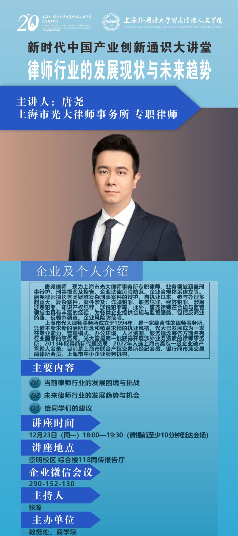 12月23日 唐尧:律师行业的发展现状与未来趋势(新时代中国产业创新通识大讲堂)