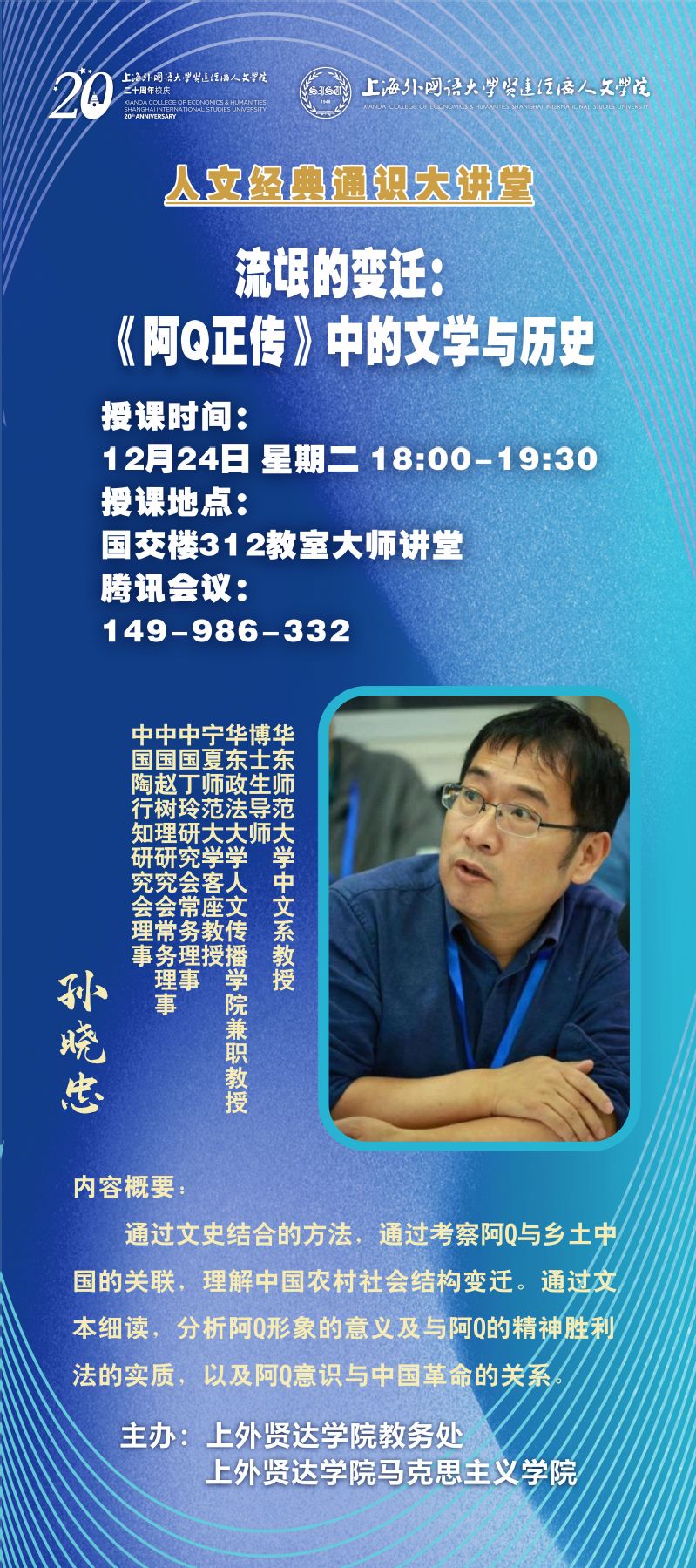 12月24日 孙晓忠:流氓的变迁:《阿Q正传》中的文学与历史(人文经典通识大讲堂)