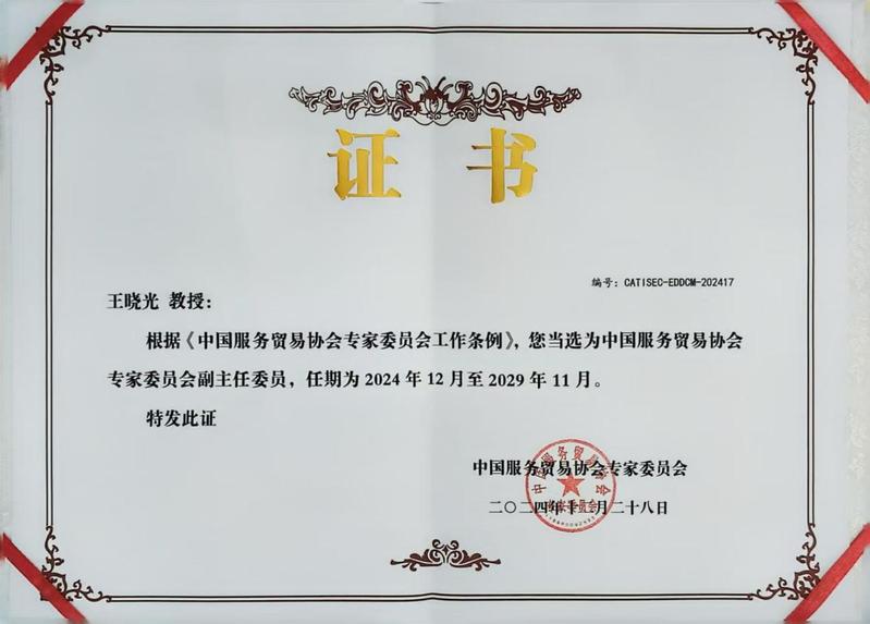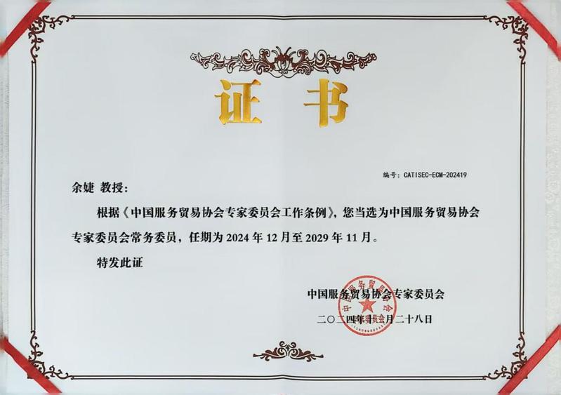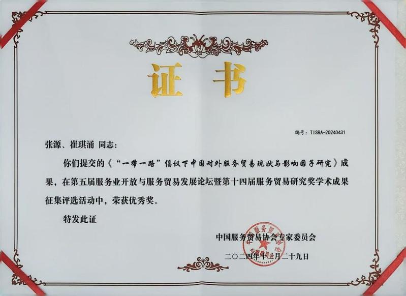 会议期间中国服务贸易协会专家委员会换届大会暨第五届第一次会员大会,taptap商学院当选中国服务贸易协会专家委员会副主任委员单位,院长王晓光教授当选中国服务贸易协会专家委员会副主任委员,副院长余婕教授当选中国服务贸易协会专家委员会常务委员。院长助理张源老师提交论坛的学术论文《“一带一路”倡议下中国对外服务贸易现状与影响因子研究》经协会专家评审,荣获第十四届服务贸易研究奖优秀奖。