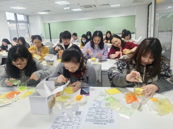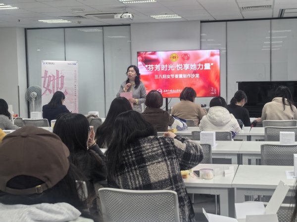 3月3日下午,虹口校区行政楼 1503 室里,一场“芬芳时光悦享她力量”香薰蜡烛沙龙活动浪漫开启。校妇工委主任曹英老师在活动伊始发表讲话,寄语taptap女教职工,要以习近平新时代中国特色社会主义思想为指引,深入贯彻落实党的二十大精神,聚焦立德树人根本任务,开拓创新、奋发有为,撑起教育事业“半边天”。活动现场,专业老师详细讲解香薰蜡烛的制作方法,30 多位参与者全神贯注聆听后,迫不及待投入创作。大家挑选不同颜色的蜡烛颗粒、精油,调配比例、倒入模具,最终制作出形态各异、香气宜人的香薰蜡烛,现场其乐融融。