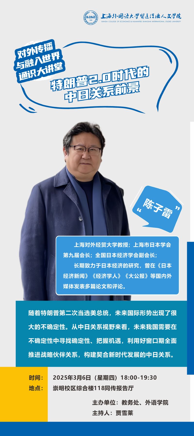 3月6日 陈子雷:特朗普2.0时代的中日关系前景(对外传播与融入世界通识大讲堂)