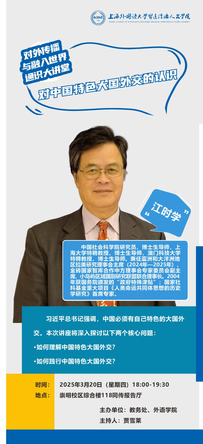 3月20日 江时学:对中国特色大国外交的认识(对外传播与融入世界通识大讲堂)