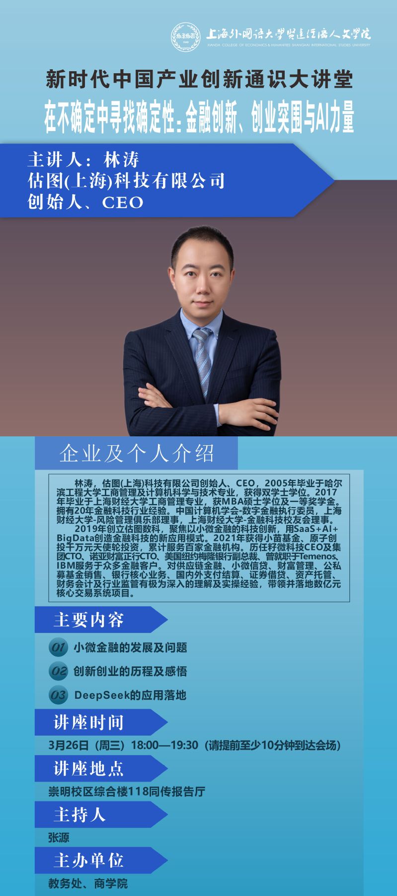 3月26日 林涛:在不确定中寻找确定性:金融创新、创业突周与AI力量(新时代中国产业创新通识大讲堂)