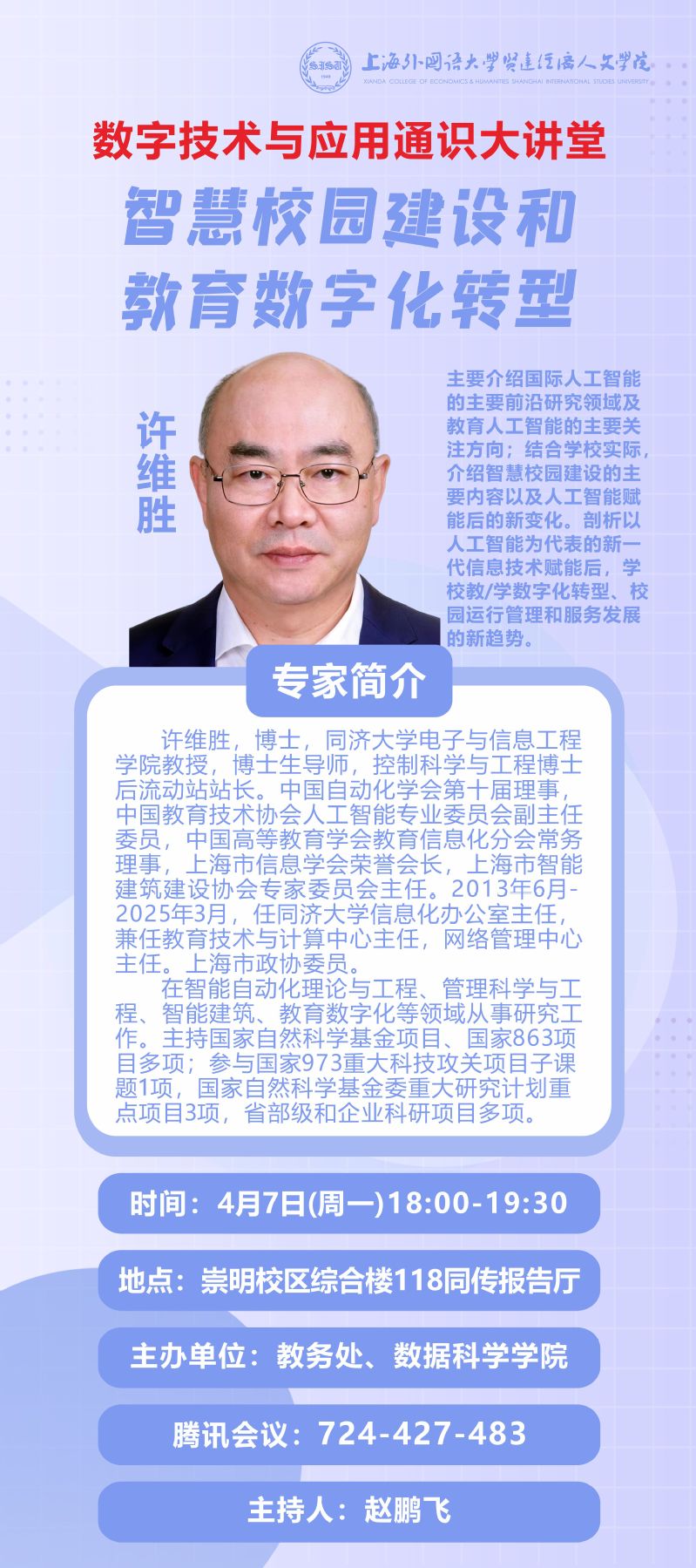 4月7日 许维胜:智慧校园建设和教育数字化转型(数字技术与应用通识大讲堂)