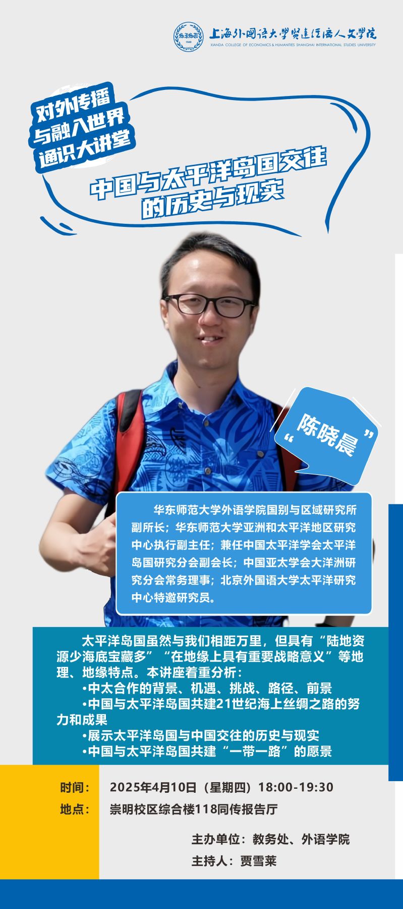 4月10日 陈晓晨:中国与太平洋岛国交往的历史与现实(对外传播与融入世界通识大讲堂)