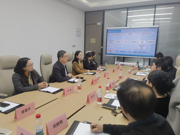 上海龙舟投资管理有限公司董事长、陆家嘴数智零碳科创基地运营方负责人周蕾博士,城碳(上海)数字科技有限公司创始人耿跃云董事长,上海金司南金融研究院产业发展中心颜玲主任等对商学院一行的到来表示热烈欢迎。交流座谈会上,王晓光院长详细介绍了上外贤达的办学规模、特色与优势,以及商学院的定位、使命与规划。王院长重点阐述了商学院在数字经济、绿色金融和金融科技领域的理论探索,以及通过产学研合作助力区域经济转型升级的成功实践,展现了学院在推动教育与产业深度融合方面的积极作为。周蕾董事长在介绍陆家嘴数智经济产业园的现状、发展前景和合作领域,他表示,产业园将积极发挥平台优势,为校企合作提供更多资源和支持。耿跃云董事长、颜玲主任也分别分享了大模型在绿色金融发展中的应用,以及绿色金融60人论坛的最新进展,并表达了与商学院开展深度合作的强烈意愿。