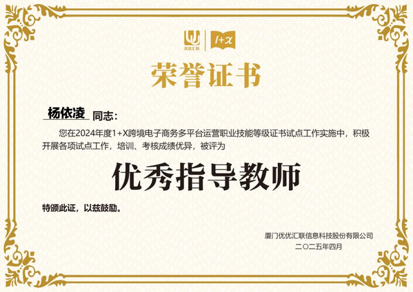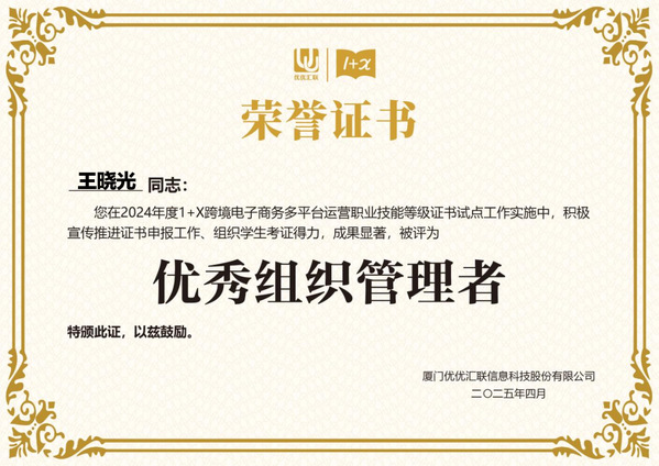2024年在教育部1+X证书制度试点工作的深入推进下,凭借在跨境电子商务多平台运营领域的卓越表现,taptap荣获2024年度“优秀试点院校”称号,商学院王晓光院长荣获“优秀组织管理者”,商学院教师耿仟、杨依凌老师获评“优秀指导老师”,以上荣誉不仅是对学生职业技能培养成效的肯定,更是对学校、学院教育教学改革成果的充分印证。