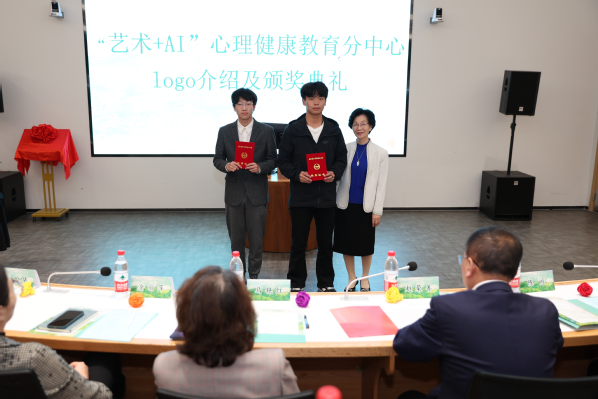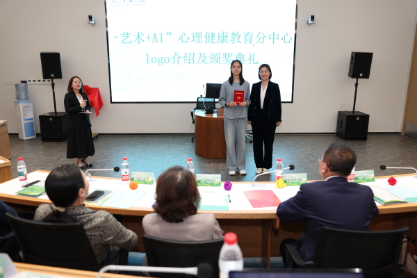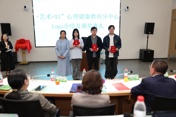 随后,与会嘉宾共同欣赏了分中心Logo。此Logo由艺传学院视觉传达设计专业的学生设计完成,巧妙地传达出分中心致力于借助艺术为师生打造全方位心理健康服务的愿景。随后,陈应部长、黄凤娟主任以及毕老师分别为Logo征集活动的一、二、三等奖获奖者颁发了荣誉证书。