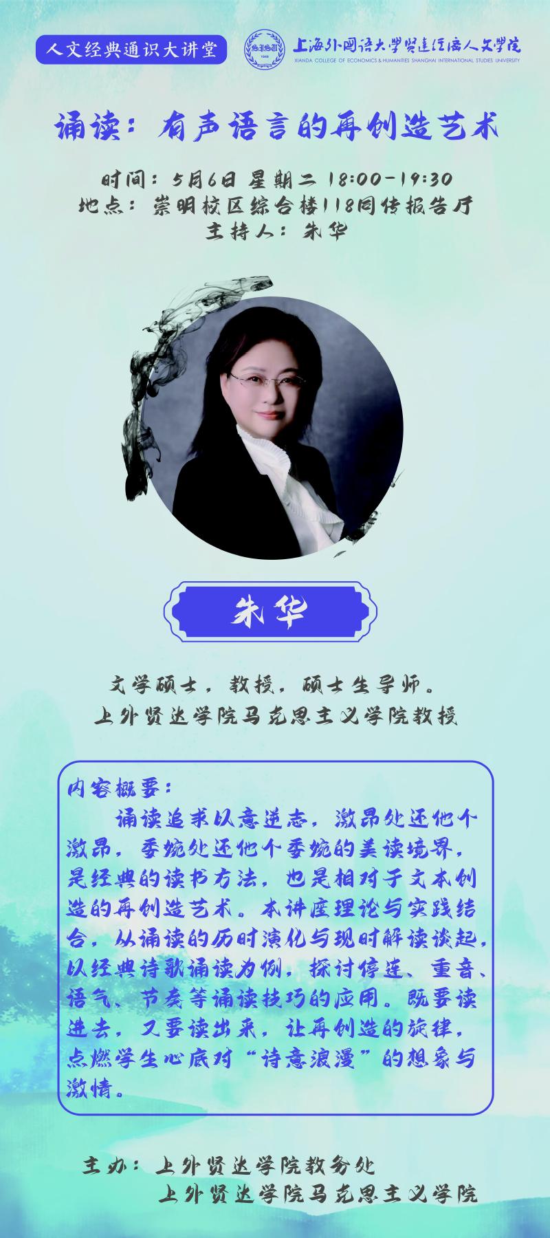 5月6日 朱华:诵读:有声语言的再创造艺术(人文经典通识大讲堂)