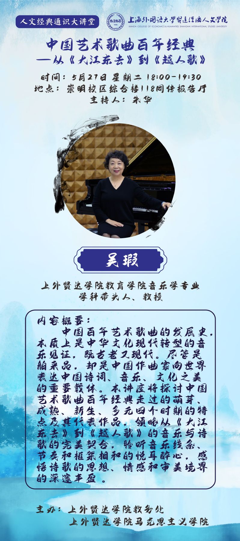 5月27日 吴瑕:中国艺术歌曲百年经典—从《大江东去》到《越人歌》(人文经典通识大讲堂)