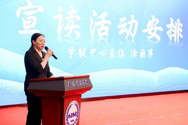 校党委书记赵荣善在致辞中回顾五四运动以爱国主义为核心的精神内涵,强调其对当代青年的启示意义。他肯定校园文化艺术节在培育创新精神与家国情怀中的作用,并向贤达学子提出“立志高远、学习实践、创新思维”三点期望,号召以行动诠释青春担当。校团委书记彭煜铭宣读表彰决定,现场对“五四红旗团委”“青年标兵”“优秀共青团员”等10类先进集体及个人进行表彰。教育学院学前专业学生刘贝贝作为青年标兵代表发言,分享专业学习、志愿服务、社会实践中的成长感悟,呼吁同学们以实践赋能理论,以担当服务社会。