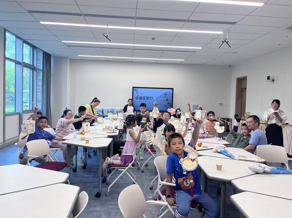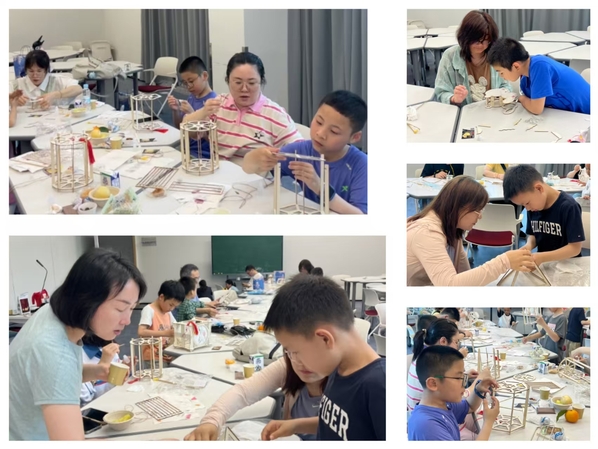 最后,活动在国交楼113室温馨收尾。家长和孩子们围坐在一起,在专业老师的悉心指导下,共同体验非遗花草灯制作的乐趣。孩子们充分发挥自己的创造力,精心制作出一盏盏独一无二的花草灯。教职工们也在旁协助,与孩子们一起享受这温馨的亲子时光。手工完成后,大家还一同享用了精致的下午茶,在轻松愉悦的氛围中,亲子间的情感进一步升华。